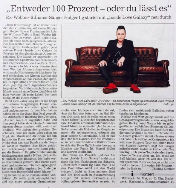 Inside Love Galaxy is a brand new pop-rock band. It’s a musical diary that describes the life of frontman Holger Ilg. Not only the emotionally and energy-charged songs are captivating but especially the infectious performance of the charismatic singer that elevates him from the crowd.